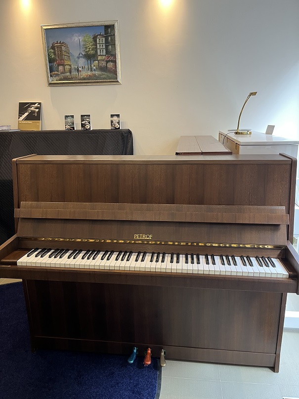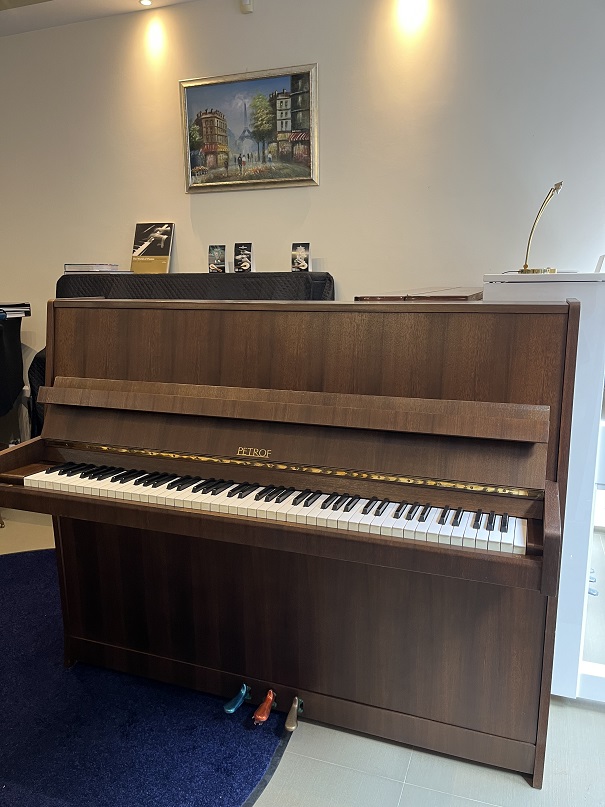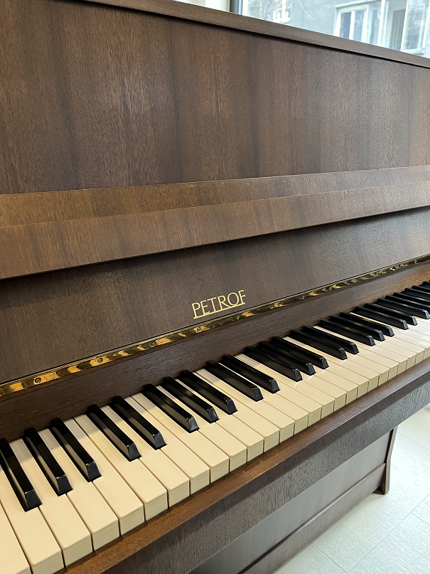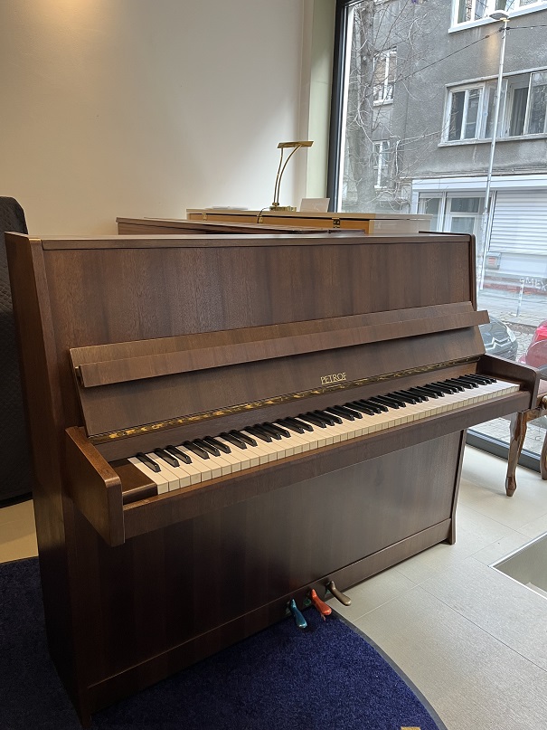 - Употребявано чешко пиано PETROF, цвят орех мат. Произведено през 1985г., 88 клавиша, 3 педала. Височина 116 см. широчина 55 см, дължина 143 см.